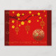 Ilustração estilizada com flores amarelas de "damasco", lanternas asiáticas com fundo vermelho. Design no cartão postal de feriado horizontal com ano personalizado 2022 e "FELIZ ANO NOVO CHINÊS" em amarelo + um pequeno pedaço de papel "ouro" Rabbit (imagem impressa) no canto. Você pode facilmente alterar o texto (cor da fonte, tamanho e posição) + excluir a ilustração do Tigre, se desejar, clicando no botão personalizar. Cartão de saudação correspondente. Perfeito para o Ano Novo Chinês do Coelho 2023.