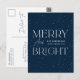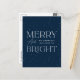 Mande uma alegria festiva com este moderno cartão postal de feriado "Feliz e Brilho". A design mostra letras brancas em um fundo marinho profundo, acentuadas com sutis pontos brancos de neve. Personalize a frente com seu nome de família e ano em letras brancas. O verso inclui espaço para o seu endereço de retorno e mensagem de feriado na coordenação das inscrições no marinho. Um cartão postal de Natal não-fotográfico eterno que combina elegância com simplicidade.