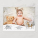 Este cartão-postal de Natal bonito apresenta uma moldura de neve na parte inferior, com a legenda "Feliz Natal" no lado esquerdo, e uma bela rena com flocos de neve no lado direito. A foto retrata um bebê adorável com um chapéu de rena e um ursinho de pelúcia ao lado dele. Facilmente personalizável substituindo a foto por uma de suas fotos favoritas!