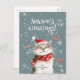 Feliz gato está aproveitando a época de Natal e diz "Meow, Season's Saudações". Uma maneira tão boa de enviar um cartão poste para seus amigos amantes de gatos. Todo o texto pode ser editado. Por exemplo, você pode preferir "Feliz Natal" ou "Feliz Natal". Certifique-se de alterar os nomes e datas do exemplo "de" para aqueles que deseja. Este design é bonito e alegre de uma aquarela vintage. Adoramos o olhar satisfeito e os olhos espremidos felizes do gatinho, e espero que você também. Você pode excluir as entradas "meow", editá-las ou mantê-las.