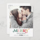 Este feliz Feliz Natal, salve o cartão postal das fotos, faz o perfeito cartões de natal moderno para um casal noivo. O simples design apresenta uma tipografia fofa e divertida com letras coloridas alternadas em vermelho, cor-de-rosa-claro, verde-esmeralda, verde-pastel e ouro amarelo.