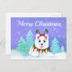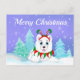 Cartão Postal De Festividades Feliz Natal Samoyed Com Banda de Cabeça Elf