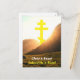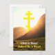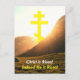 Cartão de desejo de férias da Páscoa que diz "Cristo Ressuscitou" "Verdadeiramente Ressuscitou" - uma saudação pascal entre os cristãos durante a Páscoa. O cartão tem a cruz ortodoxa oriental nele.