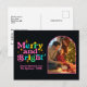Compartilhe alegria de feriado com esta Feliz e cartão postal Brilhante com tipografia retrógrada em negrito e um espaço reservado para fotos em na moda para sua foto favorita. Este design moderno encontra-se-vintage combina letras coloridas com um quadro arquivado de tendências, fazer perfeito para retratos familiares ou snapshots sazonais. Personalize com seu nome de família e ano para criar uma manutenção festiva que amigos e entes queridos apreciarão.