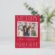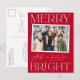 Cartão-postal de férias moderno com a sua dentro horizontal de fotografia instantânea branca. A expressão "Feliz e Brilho" é apresentada em letras brancas com um fundo vermelho festivo. Personalize a frente do cartão postal de feriado de instantâneo com a saudação personalizada, o nome da família e o ano. O cartão postal reverte para exibir seu endereço de devolução e sua mensagem pessoal.