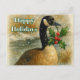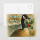 Este cartão postal de férias apresenta uma ilustração em aquarela de um Ganso Canadense adornado com folhas de azevinho e bagas. A saudação pode ser personalizada ou comprada como exibida com "Felizes Festas."