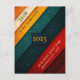 Este cartão-postal verde de Natal apresenta listras vermelhas, verdes e amarelas com texto personalizável. Este cartão é excelente para o Natal ou a festa de Anos novos.