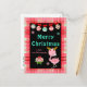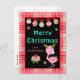 This cute and fun holiday postcard can be personalized with a family name or title. It features an adorable flamingo in reindeer antlers on a pink and red plaid background. The text combines sans serif fonts for a stylish and modern look. Winter snowflakes and patterned baubles add a festive touch.