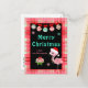 This cute and fun holiday postcard can be personalized with a family name or title. It features an adorable flamingo in a santa's hat and fairy lights on a pink and red plaid background. The text combines sans serif fonts for a stylish and modern look. Winter snowflakes and patterned baubles add a festive touch.