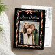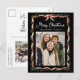 Faça uma declaração ousada com este cartão-postal de Natal moderno, com um arco de fita vermelho-d'água e um quadro verde num fundo preto elegante. A saudação festiva "Feliz Natal" aparece em um roteiro branco acima do nome da sua família, dando a sua foto de feriado um contraste impressionante. A parte traseira oferece espaço para seu endereço de devolução, uma foto adicional e uma mensagem de feriado personalizada. Um design de cartão postal de tendência que combina o encanto de feriado do eterno com o estilo contemporâneo.