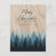 Cartão Postal De Festividades Floresta de Madeira Rústica com Script de Natal Mo