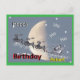 Cartão Postal De Festividades Flying Santa in Reindeer-Sled Birthday Postcard