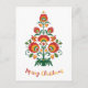 Cartão de Natal com Árvore de Natal com flores folclóricas e folhas, inspirado pelo folclore de Lowicz com texto e campo de endereço personalizáveis. Branca, Feliz Natal!