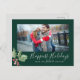 Este cartão postal de festas de fim de ano com folhagens de Natal felizes festas de fim de ano é o cumprimento perfeito e simples para um casal noivo. O design de férias de inverno apresenta um ramo de azevinho em aquarela de suave tom verde-sage com raminhos de frutos vermelhos clássicos de azevinho.