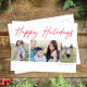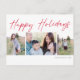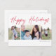 Este maravilhoso cartão postal de fotos de feriado apresenta três fotos e a saudação "Feliz feriado". O design é simples mas elegante. Este design acomoda duas fotos verticais e uma horizontais. No verso, você encontrará muito espaço para escrever sua saudação pessoal e o endereço do destinatário. Cartões postais são uma maneira maravilhosa de reduzir os custos nas mensagens de feriados!