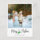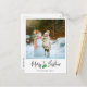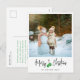 Cartão postal de Natal moderno com uma grande foto, caligrafia, luvas verdes e mensagem personalizada.