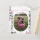Este cartão-postal de Natal moderno mostra sua foto favorita com elegantes botânicos de inverno em rosa e um roteiro cardíaco de caligrafia. Para fazer alterações avançadas, selecione Personalizar -> Editar usando a ferramenta Design. A cor da frente da placa pode ser modificada alterando a cor do plano de fundo e o elemento oval.