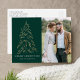 Cartaz de feriado moderno e elegante com sua foto complementada por um palheiro de folha de ouro falso de neve com um fundo verde (ou cor de sua escolha). "Feliz Natal" é apresentado numa fonte serif branca e moderna com o seu nome ou texto personalizado abaixo. O cartão postal de feriado fotográfico reverte para exibir seu endereço de devolução e mensagem personalizada.