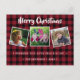 Cartões postais de Natal com uma xadrez vermelha rústica.Personalize os postais de Natal Feliz com 4 fotos, seu nome de família e endereço de retorno.