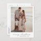 Cartão postal de Natal preto e branco, estilo moderno e minimalista, com um simples design com a sua foto vertical favorita na frente com "Feliz Natal" numa tipografia elegante com o seu nome de família e o ano seguinte. O verso tem uma segunda imagem junto com sua mensagem personalizada.