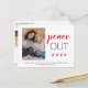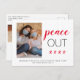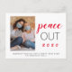 Cartão de férias do Feliz ano novo Peace Out 2020. Você pode personalizar com sua foto, o ano e a saudação (inicialmente definidos como "Desejos Mais Quentes para um Feliz ano novo"). No verso, personalize com outra foto, seu endereço de volta, mensagem pessoal (inicialmente definido como "Desejar a Paz, o Amor + a Alegria no Ano Novo") e nomes próprios.