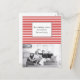 Cartão festivo na moda e à moda da foto do feriado das listras com um fundo horizontal simples do teste padrão listrado em vermelho e em branco. Este cartão simples e moderno da foto pode facilmente ser personalizado com seus próprios foto de família e cumprimento personalizado do Natal. Encontre mais opções da personalização clicando para personalizá-lo. Estúdios de Storytree do © da fotografia, Stanford, CA