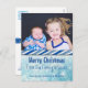 Basta adicionar a foto dos seus filhos ou da sua família a este cartão postal Feliz Natal. É uma maneira doce e barato de dizer Feliz Natal aos seus amigos e família e atualizá-los com uma foto! Pequenos sotaques bonitos na parte de trás do cartão-postal como uma bengala doce, flocos de neve azuis e a terra natalina.