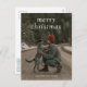 Cartaz de Natal moderno com "natal alegre" em uma letra serif simples sobre sua foto favorita. O verso tem sua mensagem personalizada em verde-escuro.