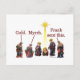 E do leste vieram três homens sábios, três reis que carregam presentes para o bebê Jesus no comedoiro: ouro, mirra… e algo de, uh, Frank. Talvez frankincense? A piada engraçada do Natal tem os magi, a natividade com santos Mary e Joseph, e uma chalaça.