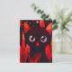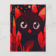 Funny Cat Hiding Behind Autumn's Leaves Anime Style Postcard, Red, Black, Orange and white colors, kawaii cat, cute funny black cat, animals,pet, gift, international cat day, cat day.