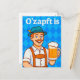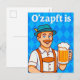 Cartão Postal De Festividades Garçom de desenho animado em Lederhosen com cervej