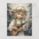Esta ilustração assistida por IA de uma menina bonita tocando violão é perfeita para uma saudação de Natal. Você sabia que pode reciclar os seus postais acrescentando um quadro e pendurando-os como miniatura? Eles fazem decoração estética de excelente feriado em casa. Imagem assistida por IA adquirida com uso comercial. Trabalho de arte: RavenPrintableDesign
