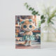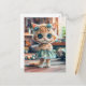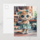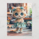 Cartão Postal De Festividades Gatinho com saia azul e laço na cabeça