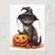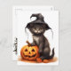 Cartão Postal De Festividades Gato de Halloween com abóboras