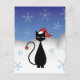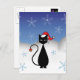 Cartão Postal De Festividades Gato de Natal com Flocos de Neve