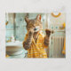 Cartão Postal De Festividades Gato escovando os dentes no banheiro de pijama lis
