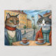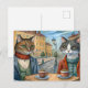 Cartão Postal De Festividades Gatos vestidos comendo em um café