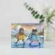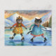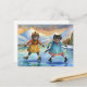 Cartão Postal De Festividades Gatos vestidos de patinação no lago dos Alpes