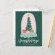 Cartaz de Natal festivo e caprichoso, com um globo de neve bonitinho na frente, com uma árvore de Natal e presentes de Natal vermelhos, cor-de-rosa e verdes. "Felizes Feriados" em exibição abaixo em uma fonte branca, com letra branca, com fundo verde escuro. Personalize a frente do cartão-postal adicionando seu nome ou texto personalizado. A parte de trás do cartão postal de Natal não fotográfico apresenta o seu endereço de retorno e a mensagem personalizada e os nomes em texto branco com um fundo aqua. Projetado para coordenar com nossa coleção de cartões de Natal Whimsical Snow Globe.