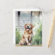 Cartão Postal De Festividades Golden Retriever na Chuva de Primavera Aquarela Vi