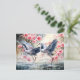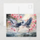 Cartão Postal De Festividades Gruas em água com reflexões florais