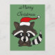Cartão Postal De Festividades Guaxinim engraçado na arte do Natal do chapéu do