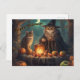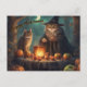 Cat e Coruja puseram uma vela acesa mesa de maçãs e abóboras no Halloween
