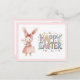 Cute pink watercolor postcard for Easter, with adorable pink bunny!