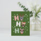 Ótima ilustração dos rostos do Bulldog Francês na palavra "Ho Ho" decorada em traje de férias. Perfeito para amantes de animais de estimação durante o feriado.