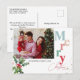 Cartão Postal De Festividades Holly Branch, uma foto da família, Natal