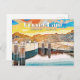 A barragem Hoover apresenta uma imagem de viagem de arte retrô vintage que mostra uma imagem da Barragem Hoover no pôr do sol.
