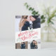 Este cartão de Natal plano com várias fotos apresenta nossa caligrafia "Natal Feliz" pintada à mão combinada com nossos azevinhos em aquarela para um visual elegante e moderno.