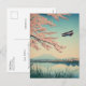 Cartão Postal De Festividades Japanese Cherry Blossom Biplane Airplane Aviation