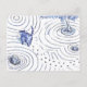 Um gato passa por um jardim Zen cuidadosamente rastejado. A arte original foi criada manualmente por Sue Clancy usando tinta azul.